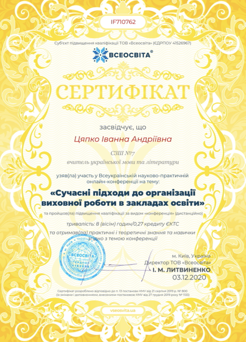 ЦЯПКО ІВАННА АНДРІЇВНА